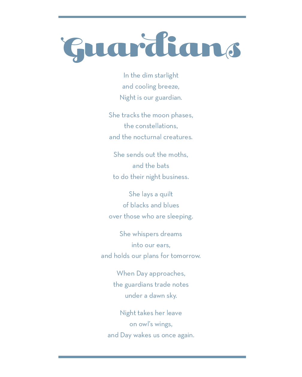 Blue, linocut with gouache and poem by Jill Bergman